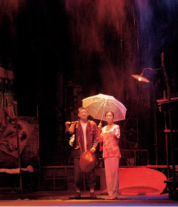 话剧《打工棚》剧照,与演员王砚辉合作