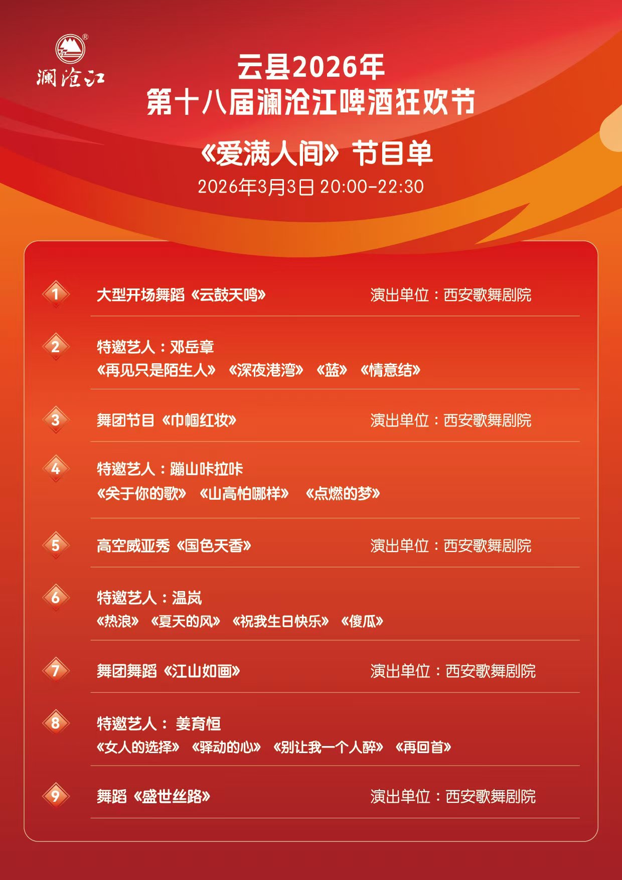 标题:云县第十八届澜沧江啤酒狂欢节“爱满人间”元宵节文艺晚会
