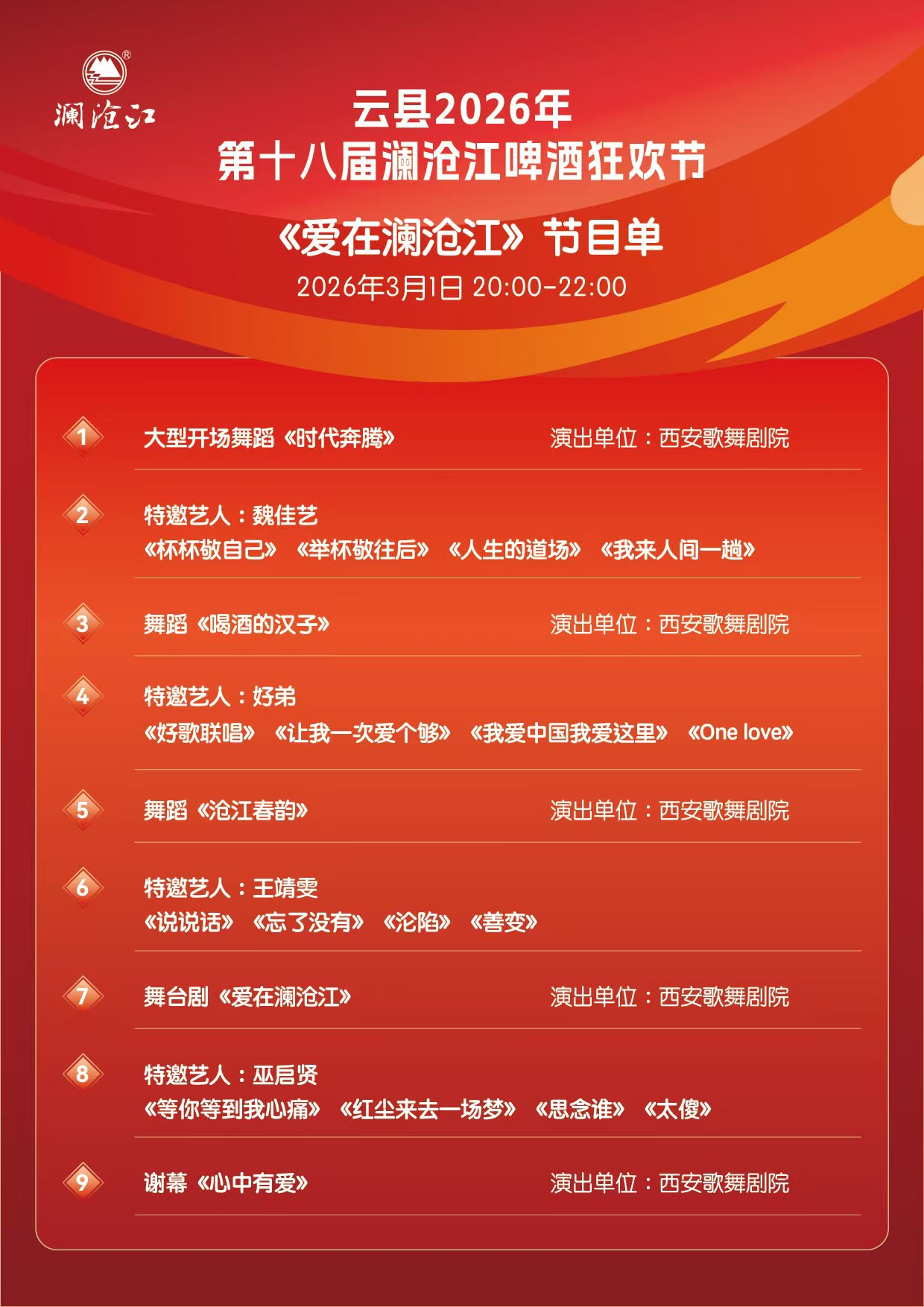 标题:云县第十八届澜沧江啤酒狂欢节“爱在澜沧江”啤酒狂欢节开幕式文艺晚会