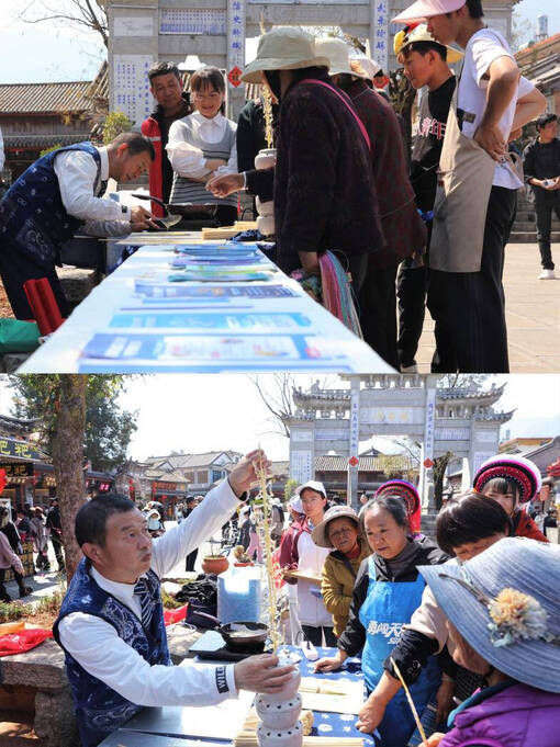 活动立足旅游“衣食住行游娱购”全链条,深耕“衣”“食”两大场景,打造特色宣传活动,让消保知识融入百姓日常生活。金融宣传人员佩戴着大理特色扎染马甲,穿梭在街巷间,向游客和商户普及个人信息保护、消费维权等知识。扎染围巾上印制的消保标语,成为街头巷尾间一道流动的宣传符号,让金融知识在潜移默化中深入人心。“食”安无忧环节,特色糖画摊吸引了众多群众驻足,非遗手艺人以糖为墨,将“不轻信低息代办、慎连陌生WIFI、清朗金融网络 守护安心消费”等消保提示语绘制成精美糖画,让大家在品尝甜蜜的同时,将金融风险防范知识记在心中。“来喜洲旅游,不仅赏了美景、尝了美食,还学到了实用的金融知识,这个糖画既好看又有意义。”来自外省的游客张先生拿着消保主题糖画说道。